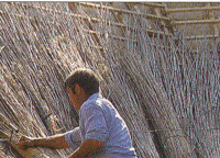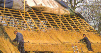 het riet vastgebonden (zie foto). Het voordeel ligt vooral in de levensduur van het dak.