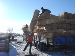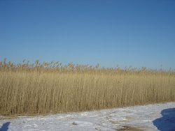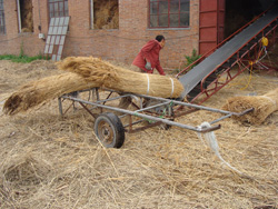 Anschliessend wird das Reet vom Erntegebiet transportiert in Richtung süd-osten wo sich