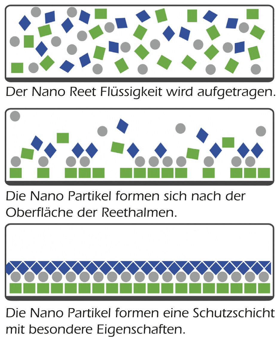 Nano Reet ist ein neu entwickelter Flüssigkeit die einen Schutzschicht am Reethalm anbringt.